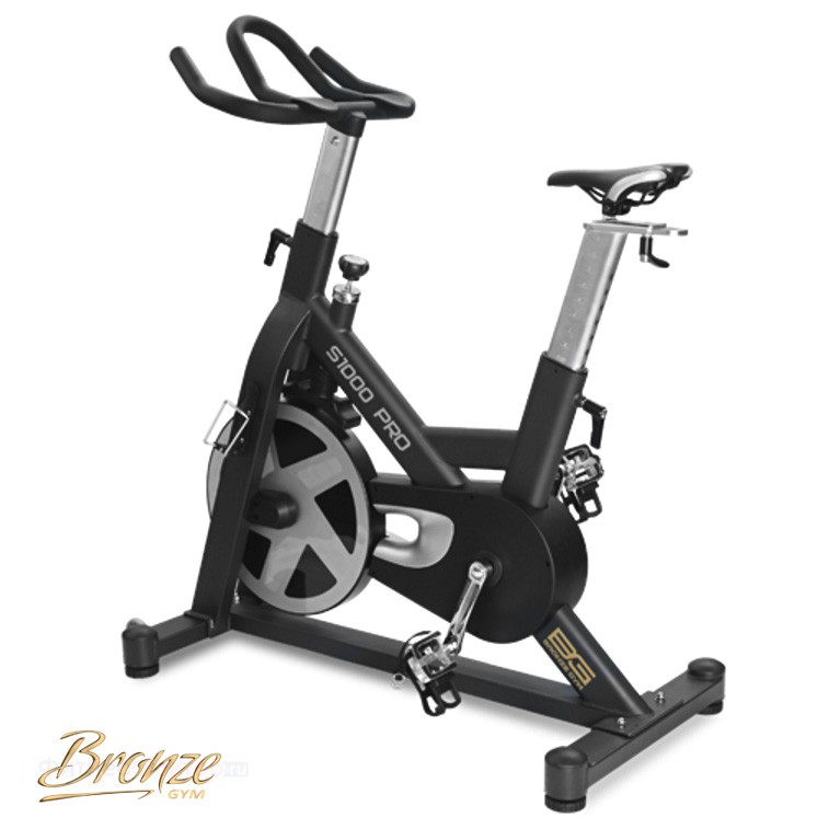 - Bronze Gym S900 PRO: конструкция с тяжелым маховиком (22 кг) и магнитной системой нагрузки. Подходит пользователем весом до 159 кг. Фиксирует среднюю скорость, пройденную дистанцию и частоту вращения педалей. Питается от батареек.
